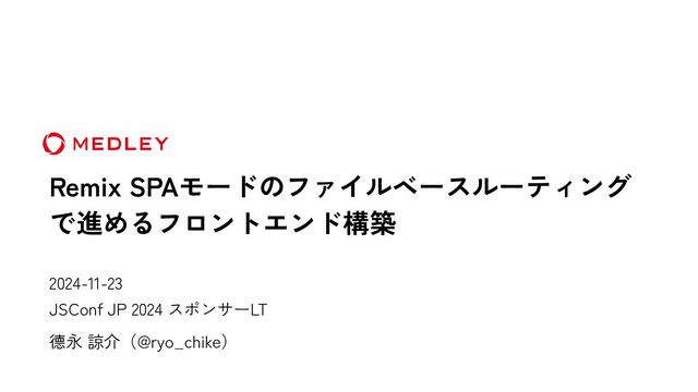 Remix SPAモードのファイルベースルーティング で進めるフロントエンド構築 2024-11-23 JSConf JP 2024 スポンサーLT 德永 諒介(@ryo_chike)
