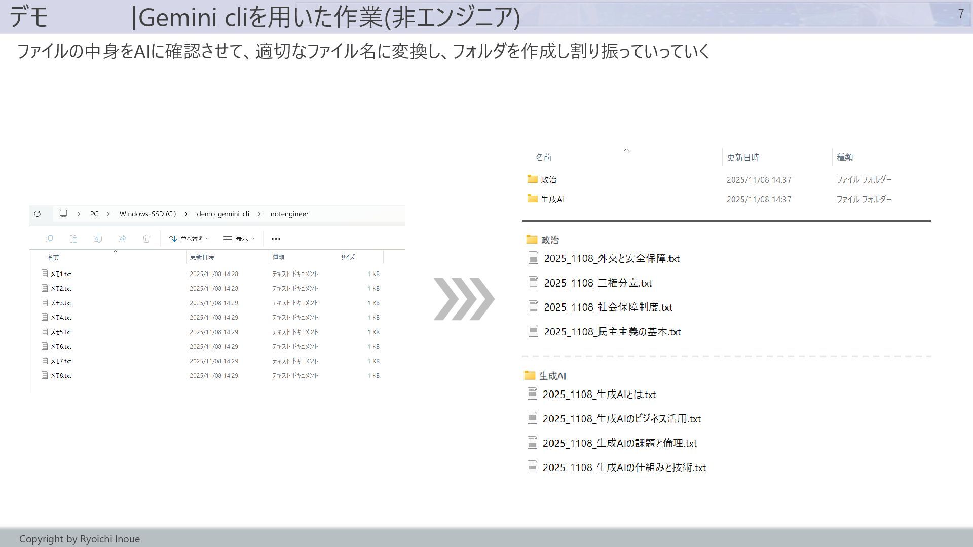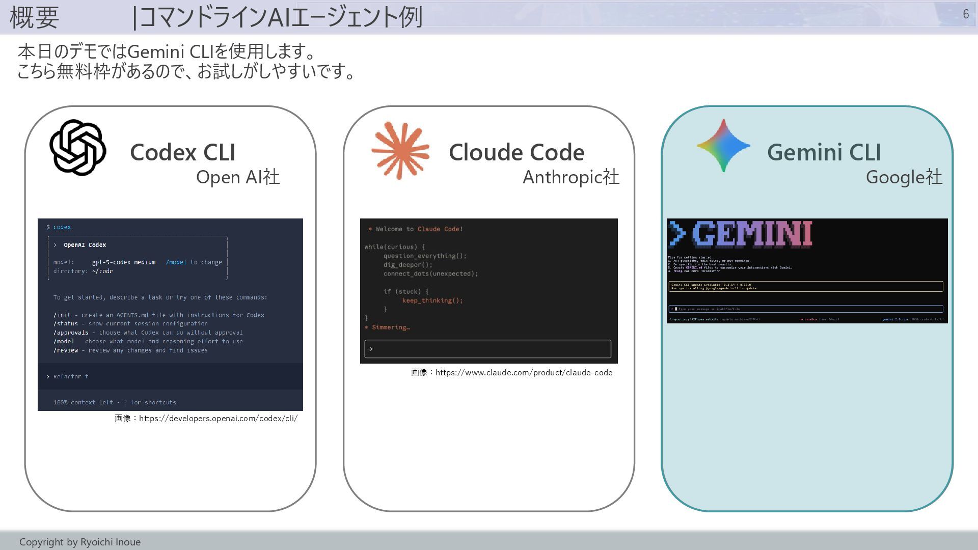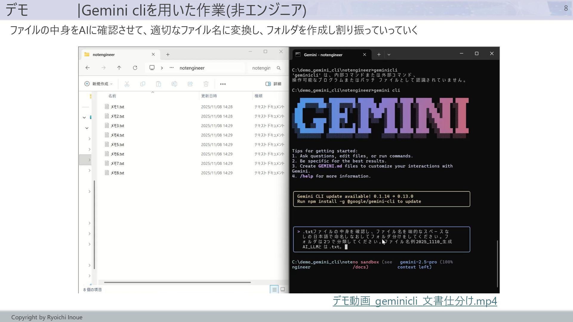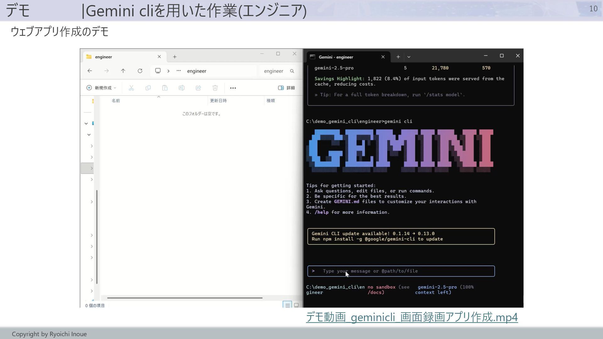 - コマンドラインAIエージェント(Gemini cli)のデモ