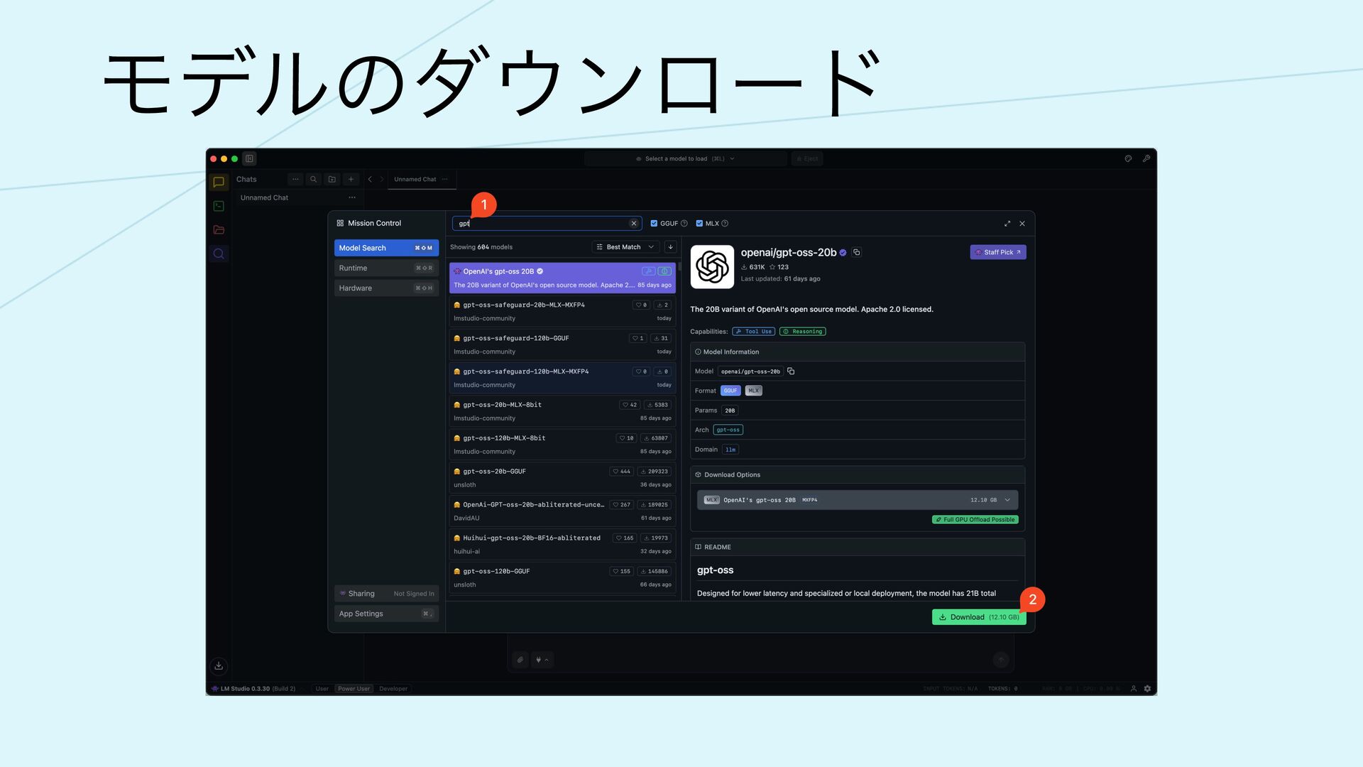 ΦϯσόΠε"* w σόΠε্Ͱಈ࡞͢Δ"* w Φʔϓϯͳ"*ϞσϧΛແྉͰར༻Մೳ ˞ར༻͢ΔࡍϥΠηϯεΛ֬ೝ w ϞσϧHQUPTT(FNNB-MBNB%FFQ4FFL w ࣮ߦڥ-.4UVEJP
