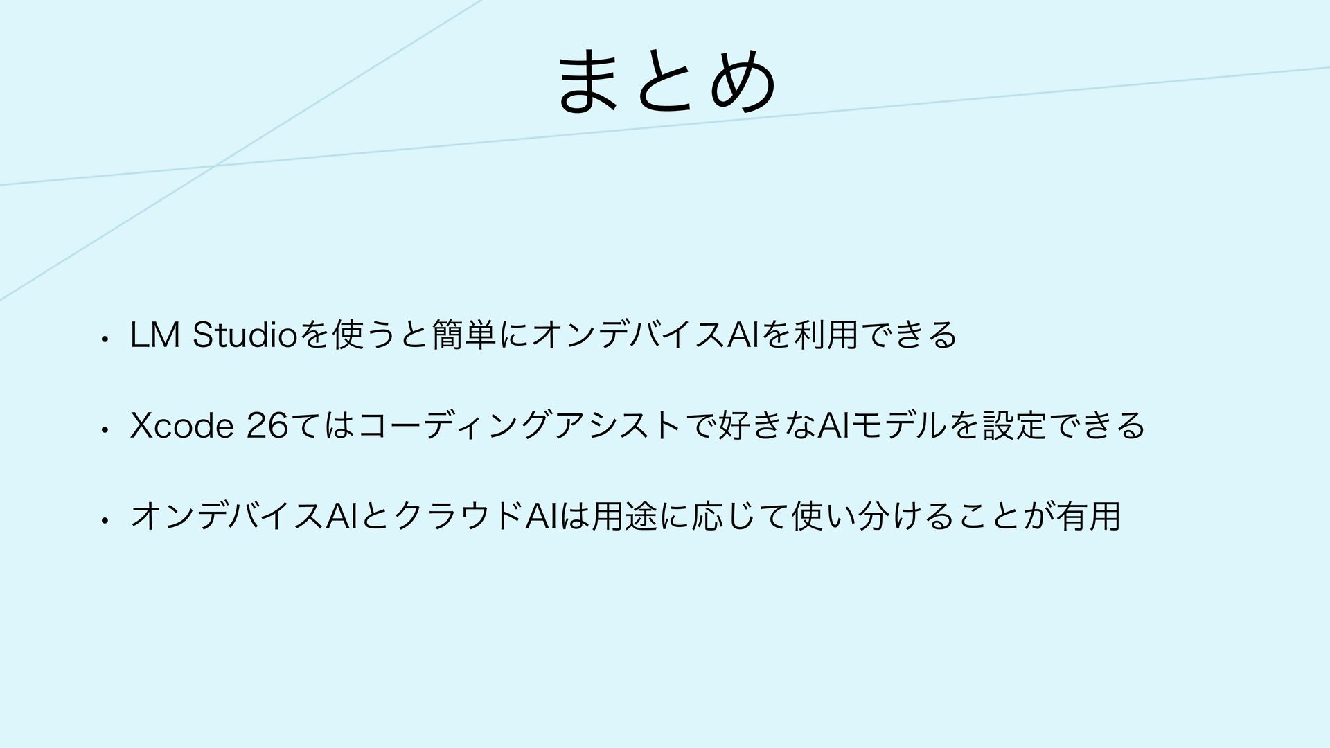 ·ͱΊ w -.4UVEJPΛ͏ͱ؆୯ʹΦϯσόΠε"*Λར༻Ͱ͖Δ w 9DPEFͯίʔσΟϯάΞγετͰ͖ͳ"*ϞσϧΛઃఆͰ͖Δ w ΦϯσόΠε"*ͱΫϥυ"*༻్ʹԠ͍͚ͯ͡Δ͜ͱ͕༗༻