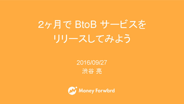 2016/09/27 渋谷 亮 2ヶ月で BtoB サービスを リリースしてみよう