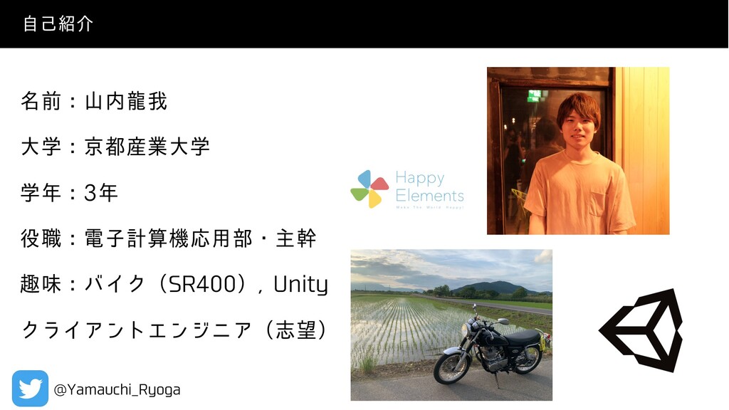 ໊લɿࢁཾզ େֶɿژ࢈ۀେֶ ֶɿ ৬ɿిࢠܭࢉػԠ༻෦ɾओװ झຯɿόΠΫʢ43ʣ 6OJUZ ΫϥΠΞϯτΤϯδχΞʢࢤʣ ࣗݾհ !:BNBVDIJ@3ZPHB ࣗݾհ