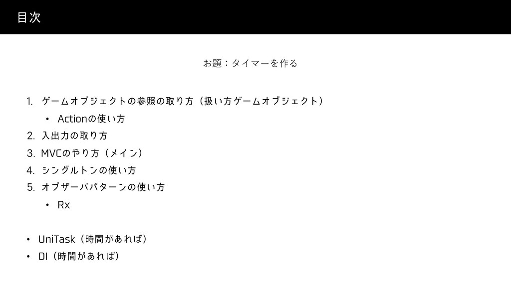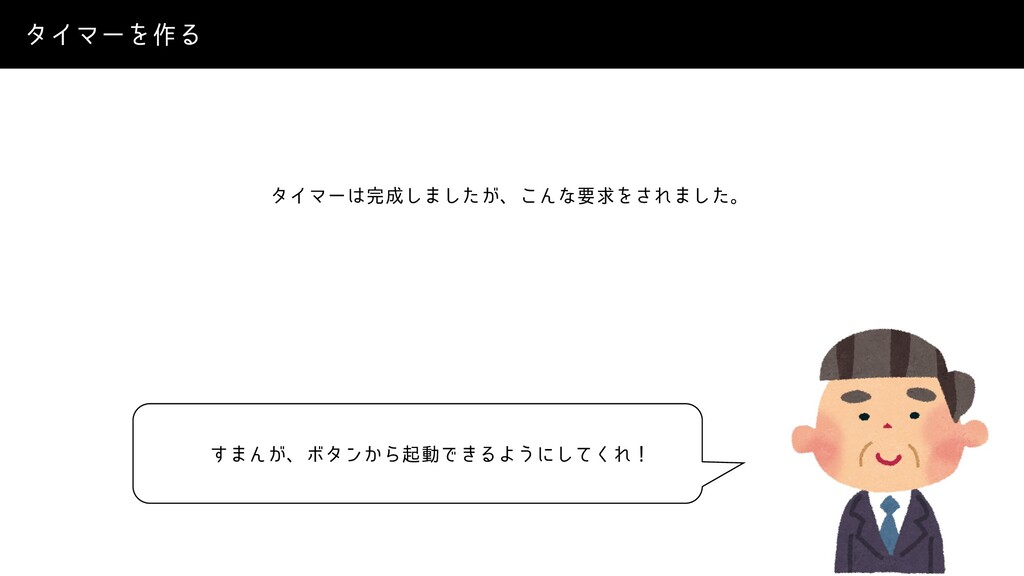 γϯάϧτϯͷ͍ํ Φϒβʔόύλʔϯͷ͍ํ • 3Y • 6OJ5BTLʢ͕࣌ؒ͋Εʣ • %*ʢ͕࣌ؒ͋Εʣ お題:タイマーを作る