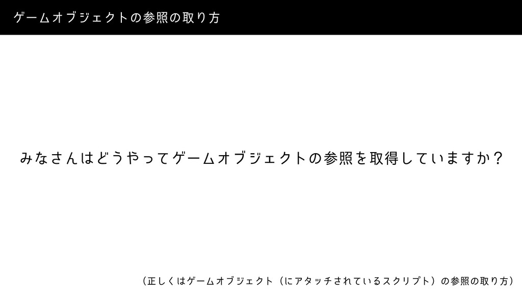 ήʔϜΦϒδΣΫτͷࢀরͷऔΓํ ʢਖ਼͘͠ήʔϜΦϒδΣΫτʢʹΞλον͞Ε͍ͯΔεΫϦϓτʣͷࢀরͷऔΓํʣ Έͳ͞ΜͲ͏ͬͯήʔϜΦϒδΣΫτͷࢀরΛऔಘ͍ͯ͠·͔͢ʁ