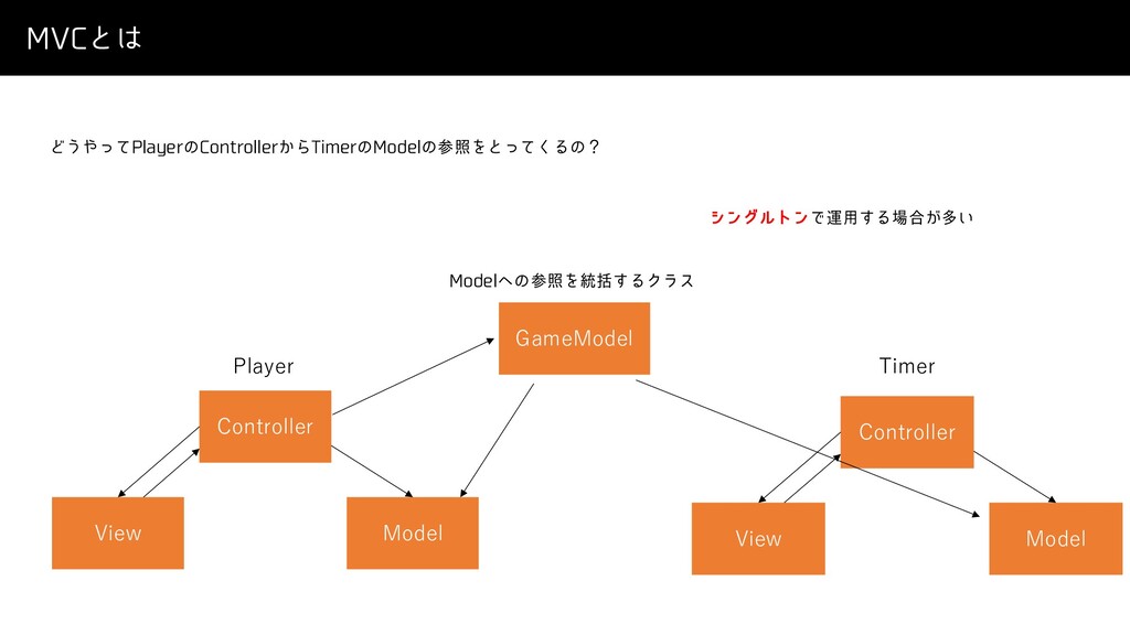 .7$ͱ Ͳ͏ͬͯ1MBZFSͷ$POUSPMMFS͔Β5JNFSͷ.PEFMͷࢀরΛͱͬͯ͘Δͷʁ Model View Controller Model View Controller Player Timer