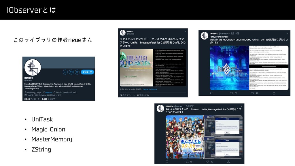 *0CTFSWFSͱ ͜ͷϥΠϒϥϦͷ࡞ऀOFVF͞Μ • 6OJ5BTL • .BHJD0OJPO • .BTUFS.FNPSZ • ;4USJOH