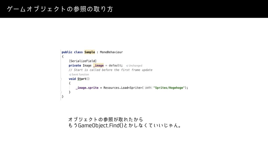 ΦϒδΣΫτͷࢀর͕औΕ͔ͨΒ ͏(BNF0CKFDU'JOE ͱ͔͠ͳ͍͍ͯ͘͡ΌΜɻ ήʔϜΦϒδΣΫτͷࢀরͷऔΓํ