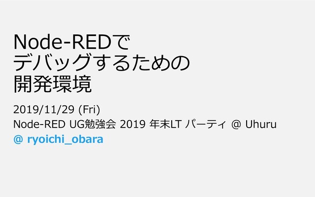 Node-REDで デバッグするための 開発環境 2019/11/29 (Fri) Node-RED UG勉強会 2019 年末LT パーティ