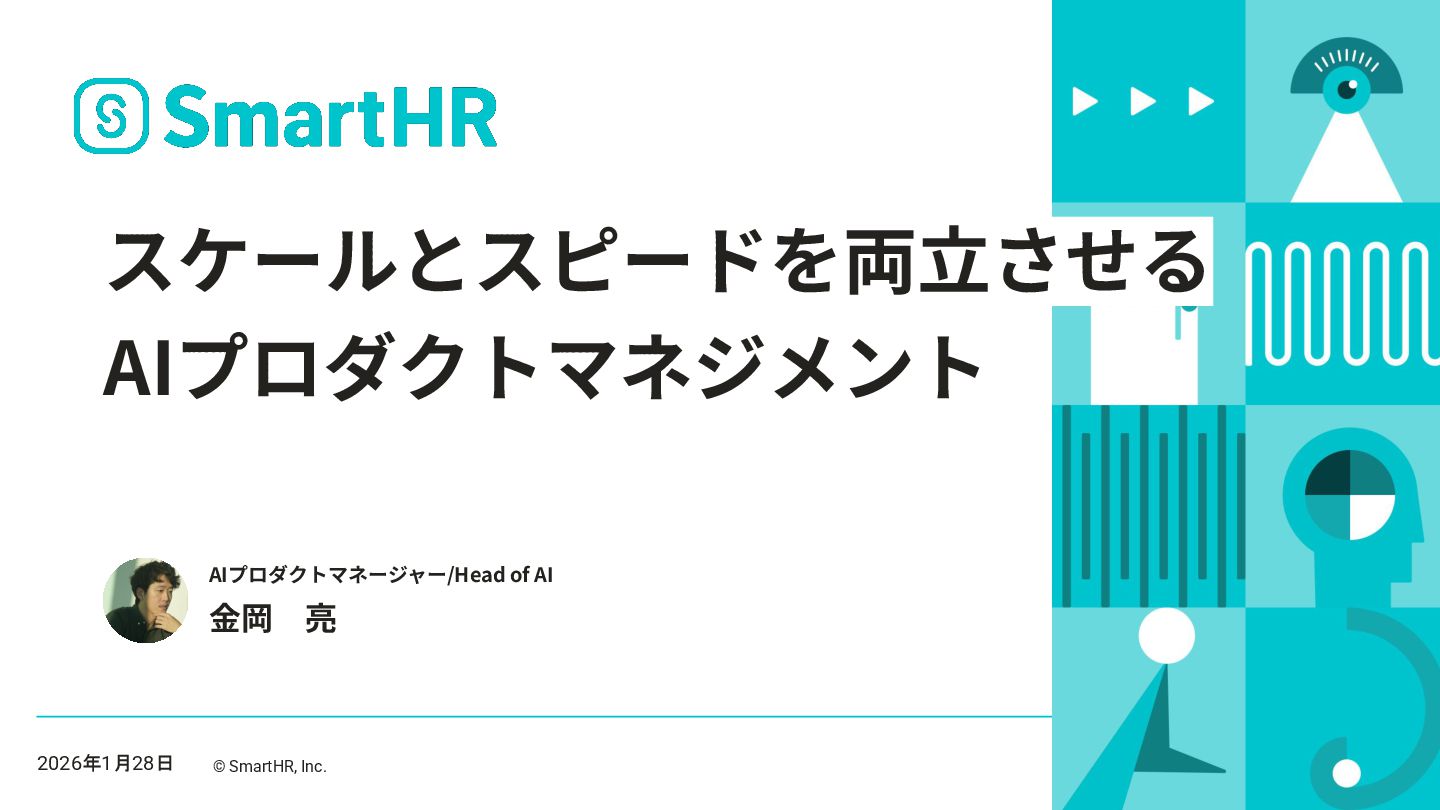 © SmartHR, Inc. スケールとスピードを両⽴させる AIプロダクトマネジメント 2026年1月28日 ⾦岡 亮 AIプロダクトマネージャー/Head of AI