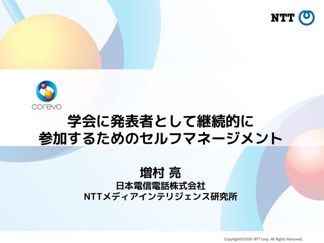 亮 (ますむら りょう), 博士(工学) 2005/4-2009/3: 東北大学工学部卒業 2009/4-2011/3: 東北大学大学院工学研究科修士課程修了 2015/4-2016/9: 東北大学大学院工学研究科博士課程修了 2011/4- 日本電信電話株式会社入社、現在に至る 経歴 主な研究分野 音声A(音声認識、音声言語処理)、自然言語処理 2018年4月 2019年3月 ICASSP 2018 INTERSPEECH 2018 APSIPA 2018 * 2 EMNLP 2018 SIGDIAL 2018 COLING 2018 ASJ 2018A*2 ASJ 2019S*2 国 内 国 際 JSAI 2018 NL 201812 NLC 201902 自身のこの1年の主著発表(国内査読なし8, 国際査読あり7) SP 201903