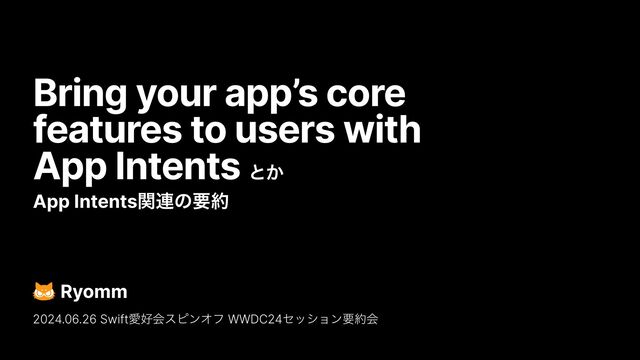 Bring your app’s core features to users with App Intents とか App Intents 関連の要約