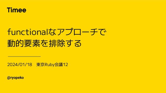 functionalなアプローチで 動的要素を排除する 2024/01/18 東京Ruby会議12 @ryopeko