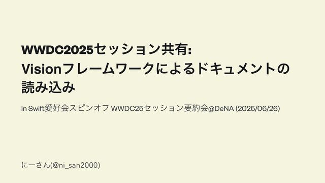 WWDC2025ηογϣϯڞ༗: VisionϑϨʔϜϫʔΫʹΑΔυΩϡϝϯτͷ ಡΈࠐΈ in SwiftѪձεϐϯΦϑ WWDC25ηογϣϯཁձ@DeNA (2025/06/26) ʹʔ͞Μ(@ni_san2000)