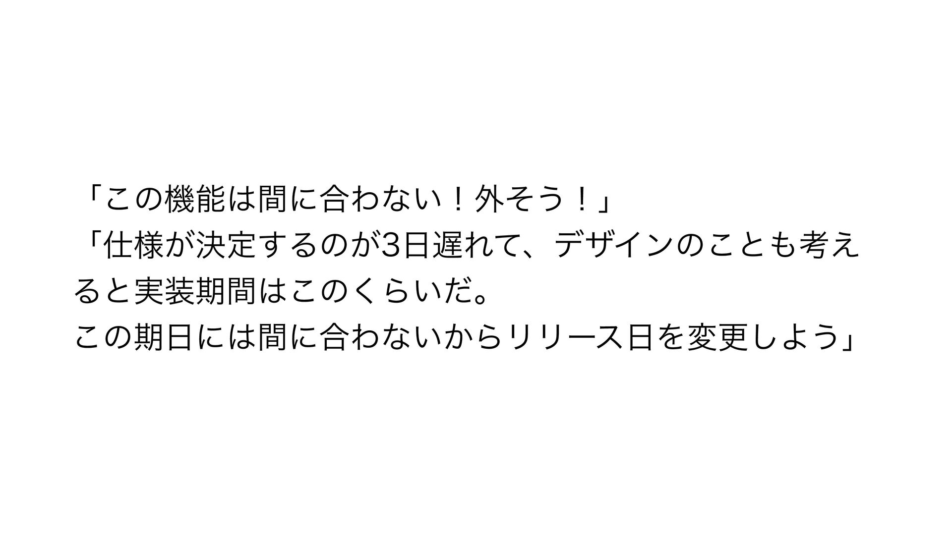 ʮ͜ͷػೳؒʹ߹Θͳ͍ʂ֎ͦ͏ʂʯ ʮ༷͕ܾఆ͢Δͷ͕ΕͯɺσβΠϯͷ͜ͱߟ͑ Δͱ࣮ظؒ͜ͷ͘Β͍ͩɻ ͜ͷظʹؒʹ߹Θͳ͍͔ΒϦϦʔεΛมߋ͠Α͏ʯ