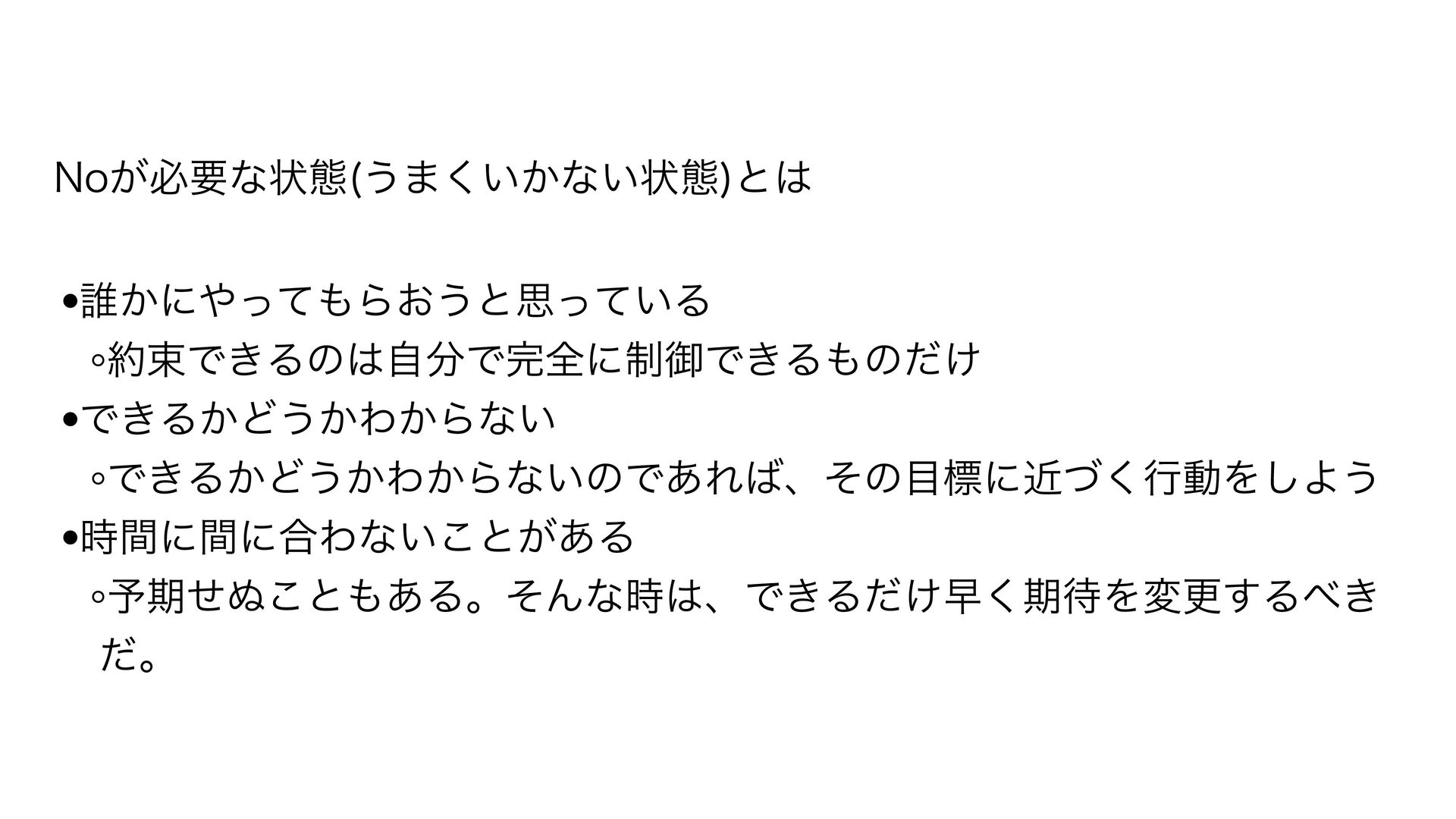 /P͕ඞཁͳঢ়ଶ ͏·͍͔͘ͳ͍ঢ়ଶ ͱ •୭͔ʹͬͯΒ͓͏ͱࢥ͍ͬͯΔ ◦ଋͰ͖ΔͷࣗͰશʹ੍ޚͰ͖Δͷ͚ͩ •Ͱ͖Δ͔Ͳ͏͔Θ͔Βͳ͍ ◦Ͱ͖Δ͔Ͳ͏͔Θ͔Βͳ͍ͷͰ͋Εɺͦͷඪʹۙͮ͘ߦಈΛ͠Α͏ •࣌ؒʹؒʹ߹Θͳ͍͜ͱ͕͋Δ ◦༧ظͤ͵͜ͱ͋ΔɻͦΜͳ࣌ɺͰ͖Δ͚ͩૣ͘ظΛมߋ͢Δ͖ ͩɻ