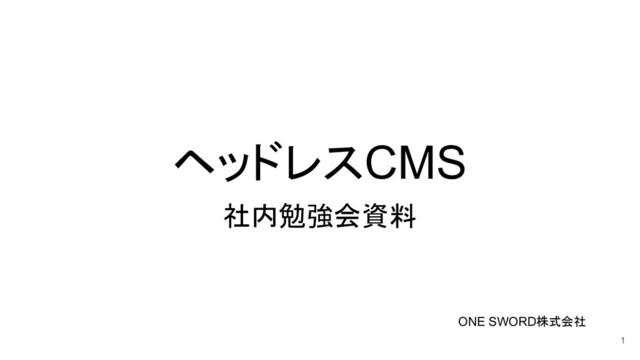 ヘッドレスCMS 社内勉強会資料 1 ONE SWORD株式会社