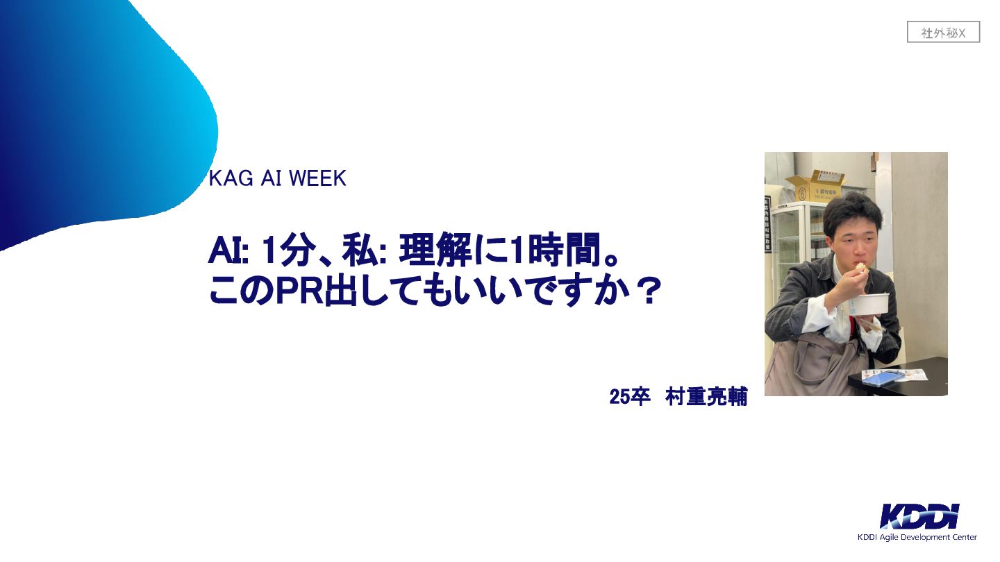 社外秘X AI: 1分、私: 理解に1時間。 このPR出してもいいですか? KAG AI WEEK