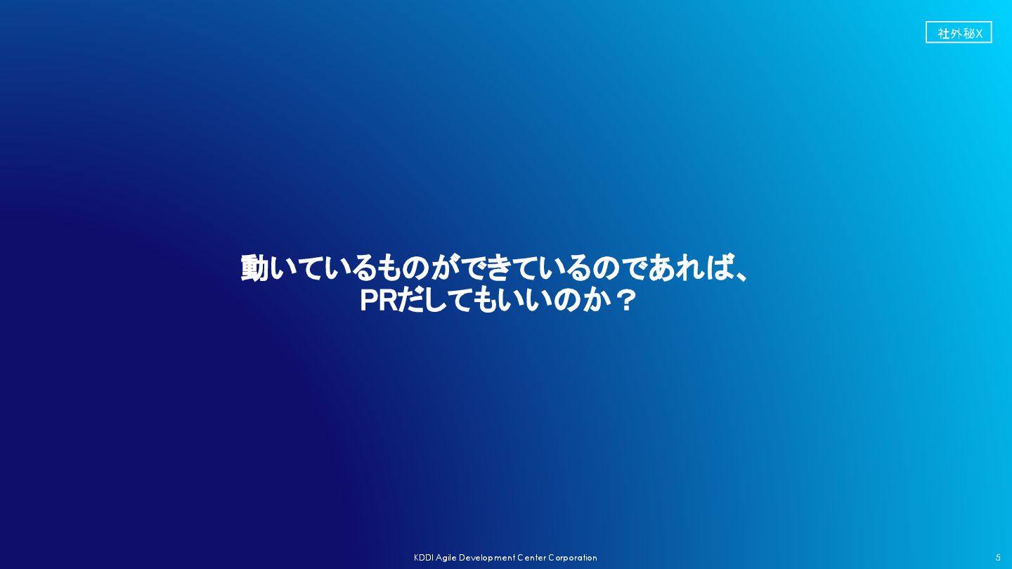 社外秘X 5 KDDI Agile Development Center Corporation 動いているものができているのであれば、 PRだしてもいいのか?