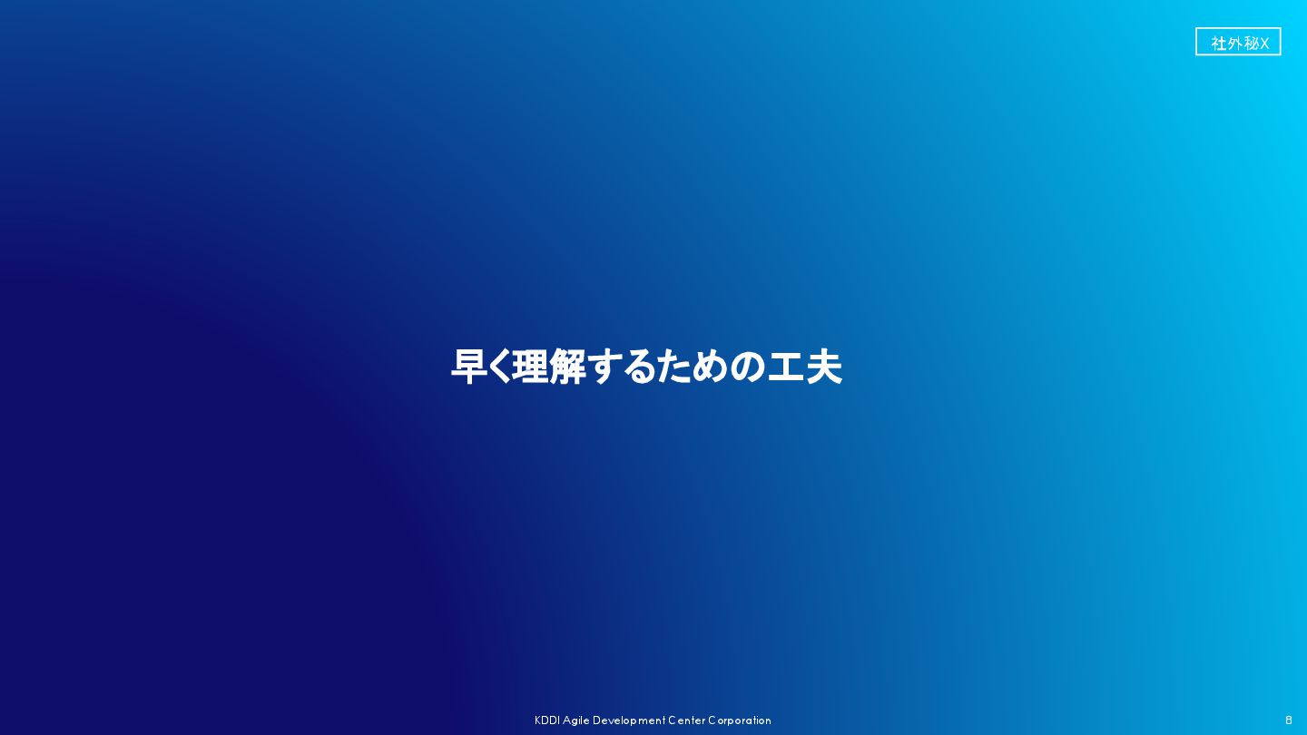 社外秘X 8 KDDI Agile Development Center Corporation 早く理解するための工夫