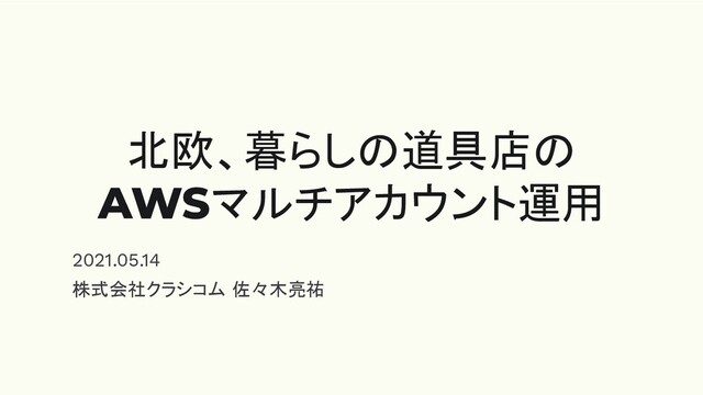 北欧、暮らしの道具店の AWSマルチアカウント運用 2021.05.14 株式会社クラシコム 佐々木亮祐