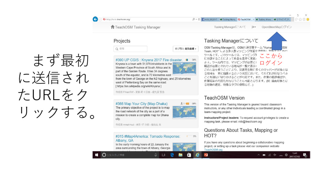 まず最初 に送信され たURLをク リックする。 ここから ログイン