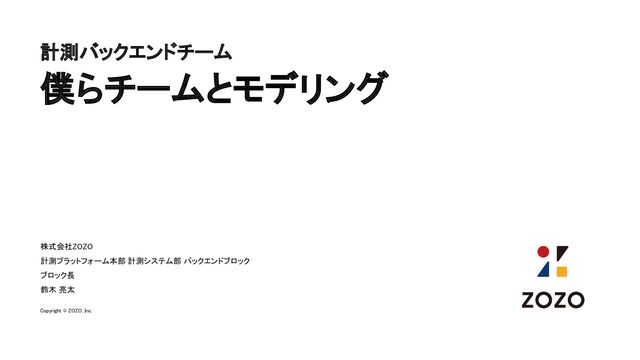 計測バックエンドチーム 僕らチームとモデリング 株式会社ZOZO 計測プラットフォーム本部 計測システム部 バックエンドブロック ブロック長 鈴木 亮太 Copyright
