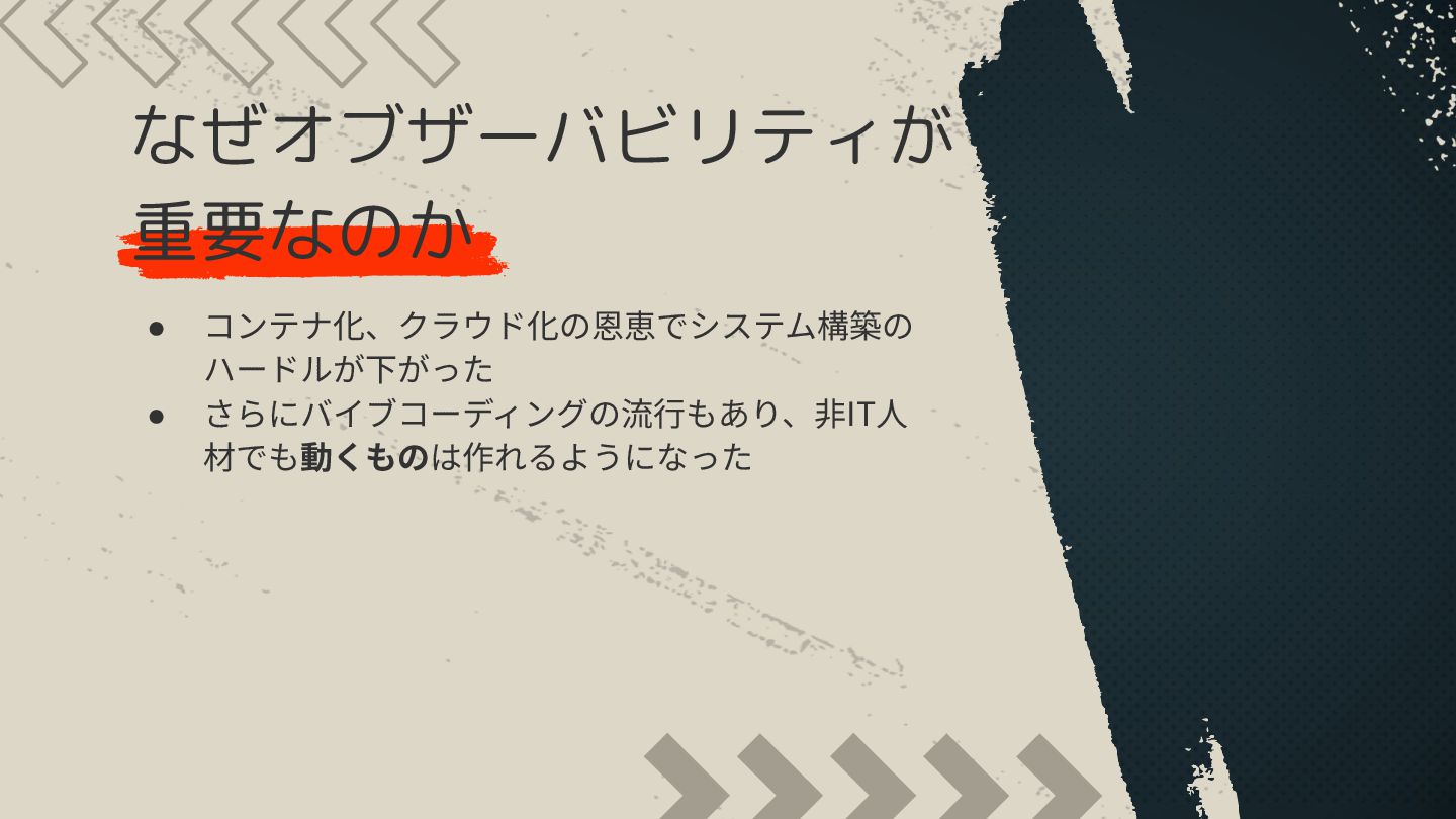 「現場の「守り」から組織の「攻め」へ。SRE視点で学ぶ、属人化しない監視設計とオブザーバビリティ」 https://wake-career.connpass.com/event/379802/ で発表した資料。