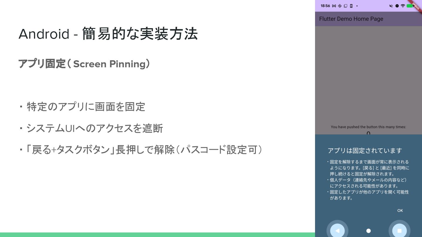 24時間止まらないFlutterアプリの 作り方 Flutterアプリでキオスクモード実装