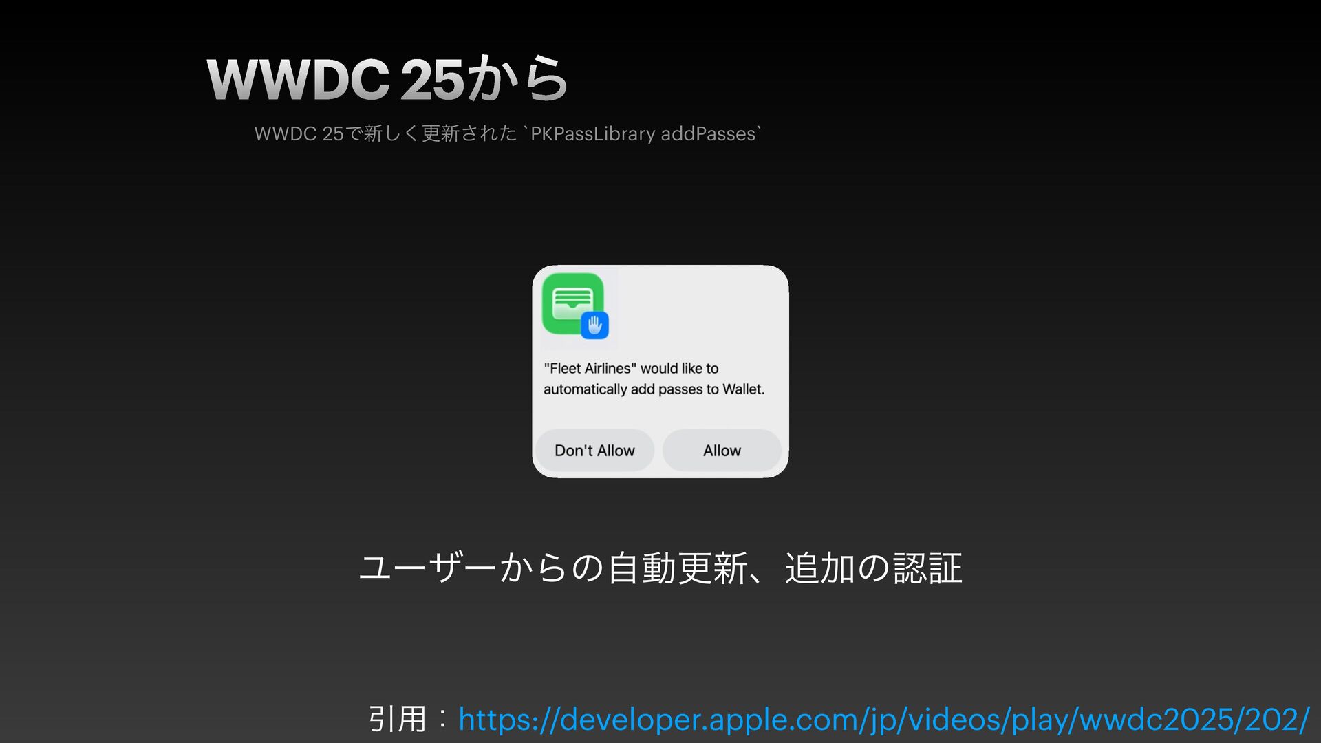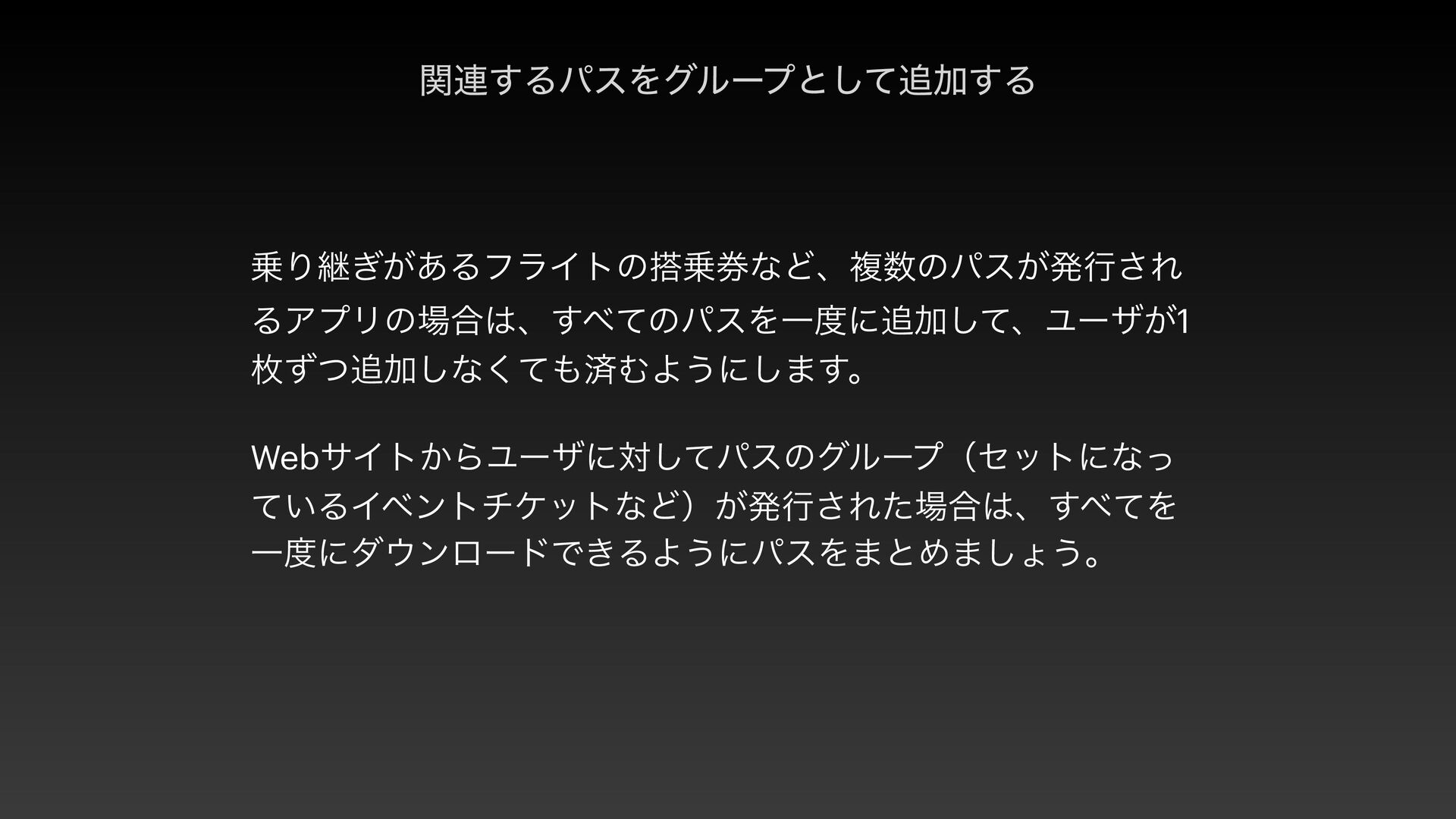 このセッションは、Apple Walletをもっと便利に使うための提案です 。