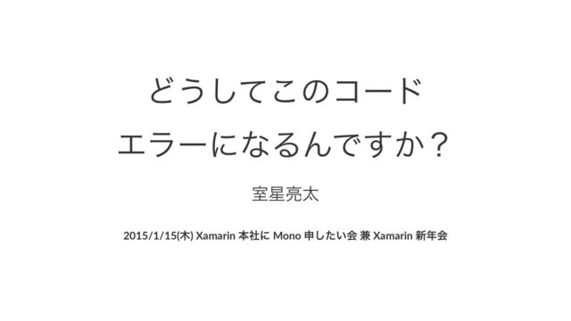Ͳ͏ͯ͜͠ͷίʔυ ΤϥʔʹͳΔΜͰ͔͢ʁ ྄ࣨଠ 2015/1/15()(Xamarin(ຊࣾʹ(Mono(ਃ͍ͨ͠ձ(݉(Xamarin(৽ձ