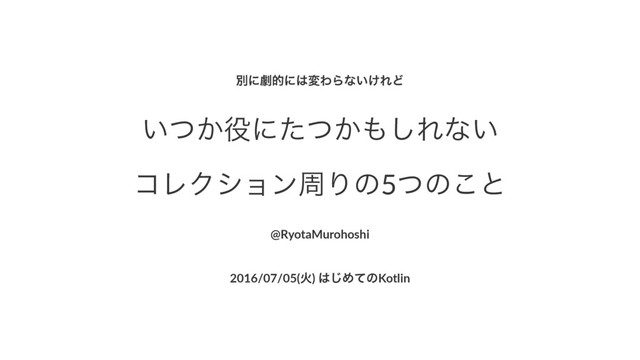 ผʹܶతʹมΘΒͳ͍͚ΕͲ ͍͔ͭʹ͔ͨͭ͠Εͳ͍ ίϨΫγϣϯपΓͷ5ͭͷ͜ͱ @RyotaMurohoshi 2016/07/05(Ր)*͡ΊͯͷKotlin