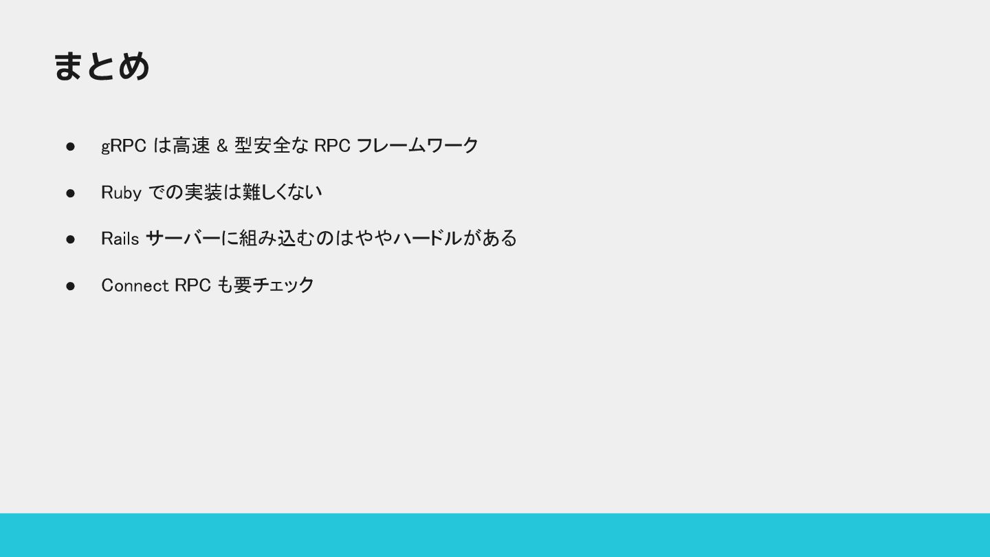 での実装は難しくない • Rails サーバーに組み込むのはややハードルがある • Connect RPC も要チェック まとめ