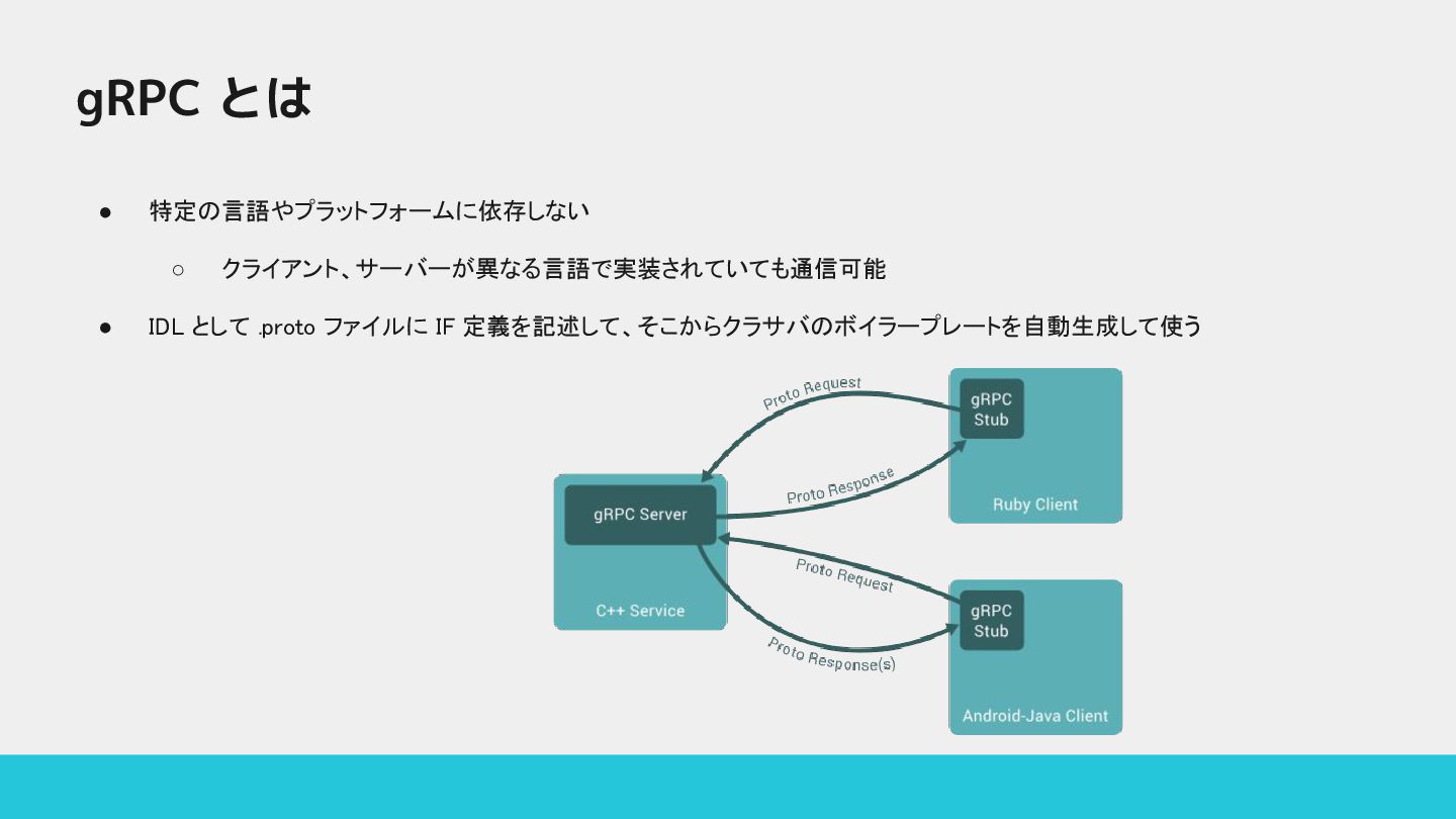 • gRPC は高速 & 型安全な RPC フレームワーク • Ruby