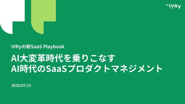 AI⼤変⾰時代を乗りこなす AI時代のSaaSプロダクトマネジメント IVRyの新SaaS Playbook 2025/07/15