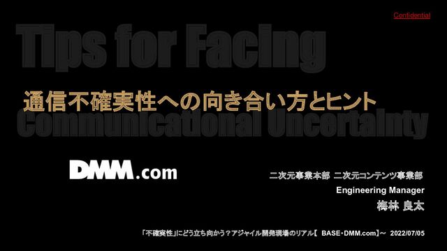 Confidential Tips for Facing Communicational Uncertainty 二次元事業本部 二次元コンテンツ事業部 Engineering Manager