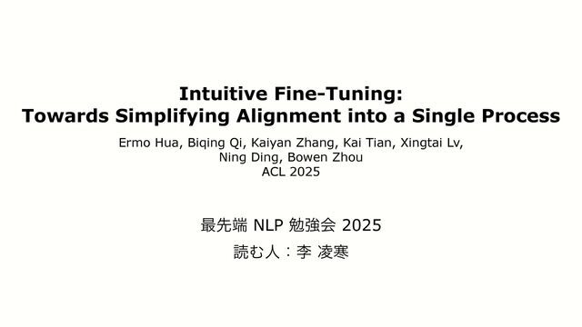 model/human preference” ͋ͨΓʣ - SFT ͱ PO/RL ͷؔ࿈ʹ͍ͭͯҎԼͷจݙͷํ͕Θ͔Γ͍͢ - DeepSeekMath: Pushing the Limits of Mathematical Reasoning in Open Language Models - On the Generalization of SFT: A Reinforcement Learning Perspective with Reward Rectification
