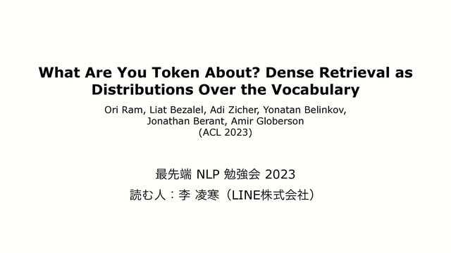 Amir Globerson (ACL 2023) ࠷ઌ NLP ษڧձ 2023 ಡΉਓɿཥ ྇פʢLINEגࣜձࣾʣ What Are You Token About? Dense Retrieval as Distributions Over the Vocabulary