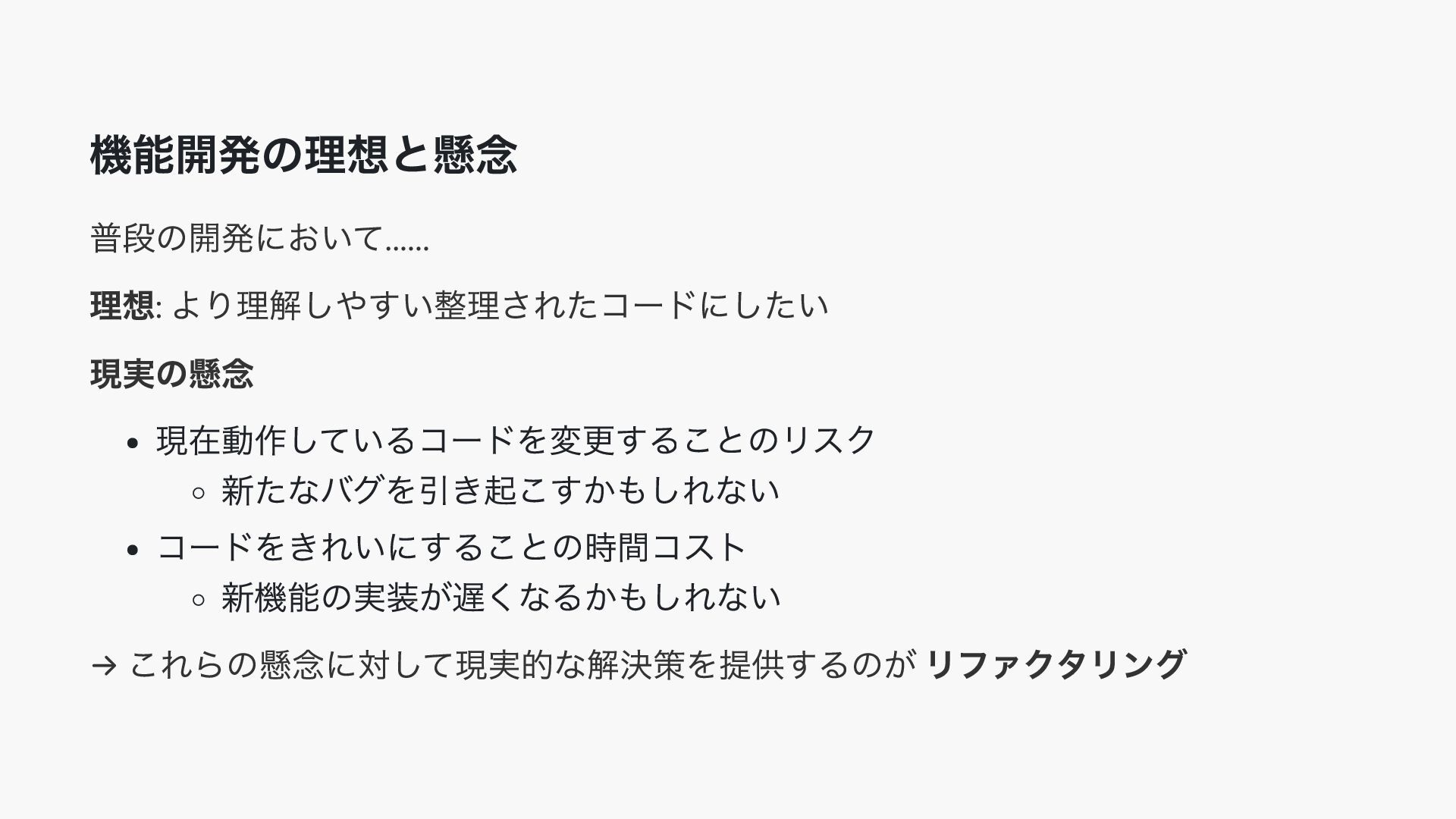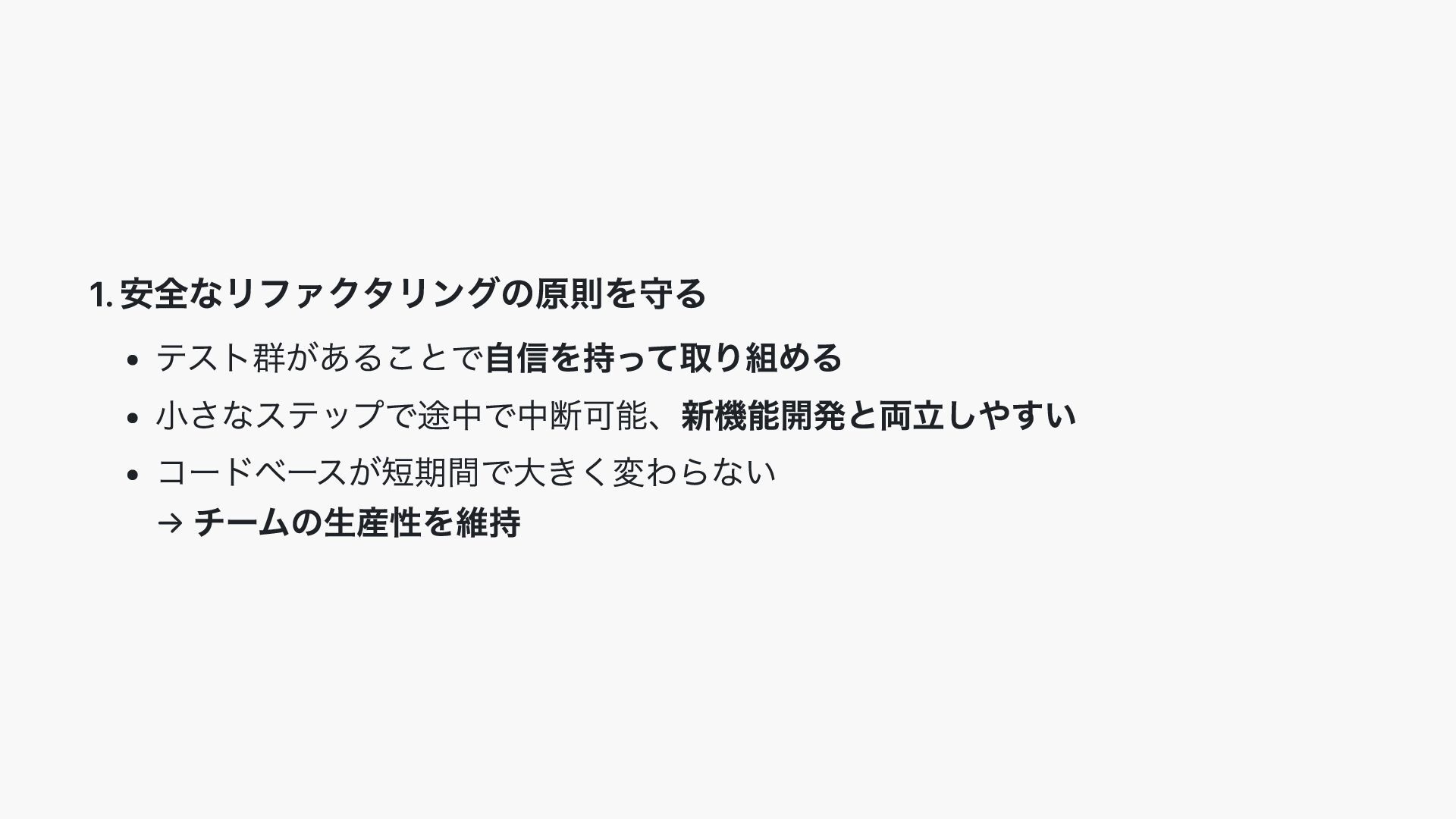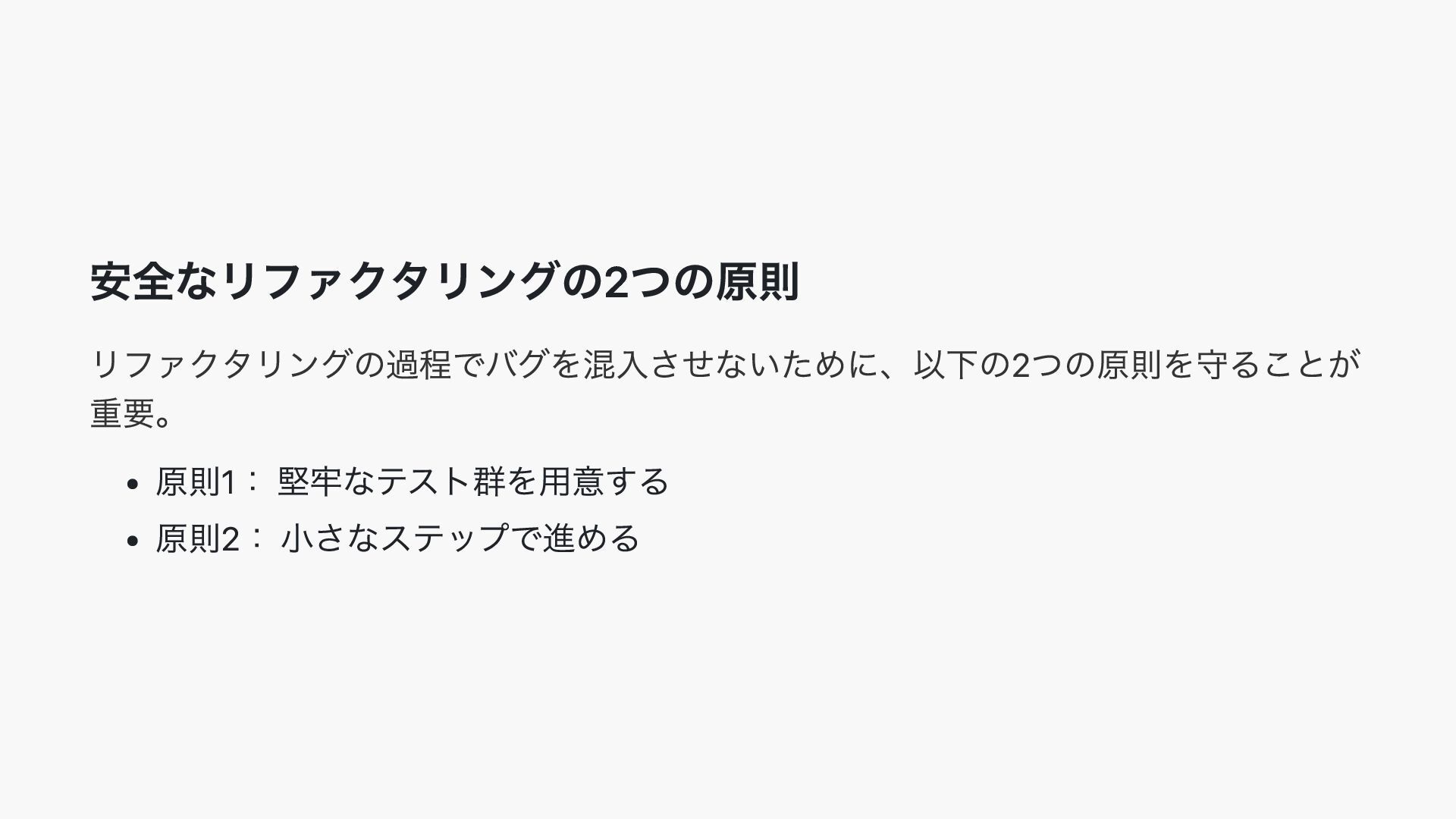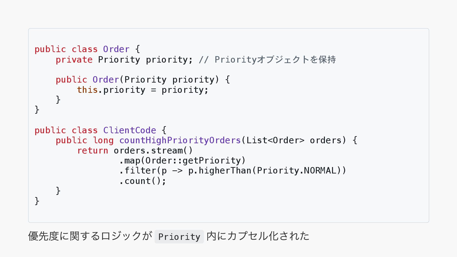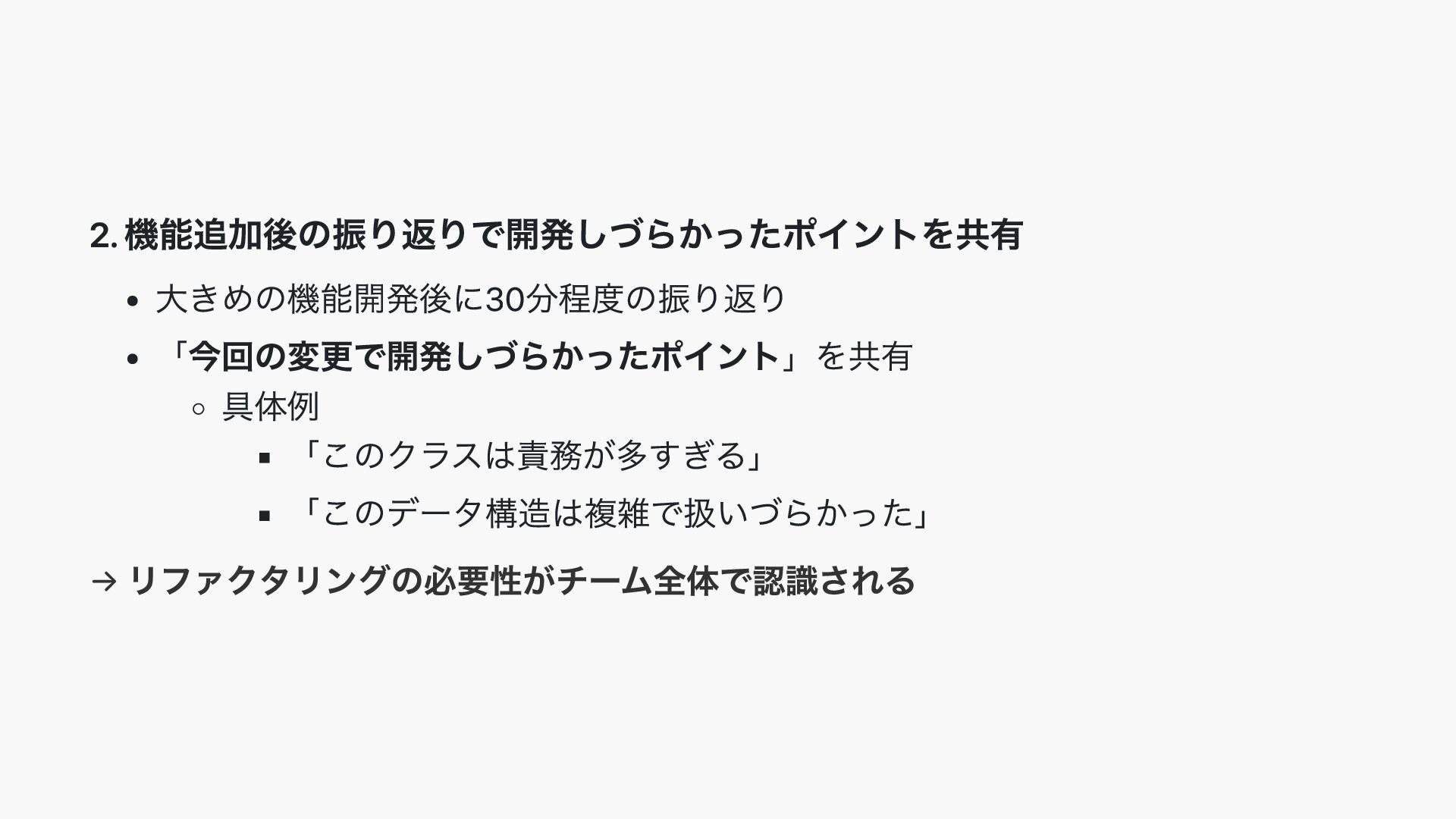 sendUserRegistrationConfirmation(User user); } public class OrderService { private final NotificationService notificationService; public void processOrder(Order order) { // 注文処理... notificationService.sendOrderConfirmation(order); } } public class UserService { private final NotificationService notificationService; public void registerUser(User user) { // ユーザー登録処理... notificationService.sendUserRegistrationConfirmation(user); } }