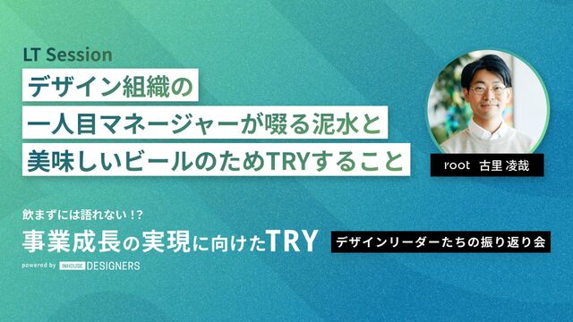 一人目デザイナーとして飛び込んだ事業が爆速で成長するにつれ、デザイン組織の組成が求められます。その時、これまで事業ばかり見てきたデザイナーは「経営」という未知なる側面に向き合い、自身の知識不足や経験不足に悩むことでしょう。rootの一人目マネージャーが今年一年泥臭くもがいたことについて共有します。ぜひ皆さんなりのTRYを見つけ最後に美味しいビールで乾杯しましょう🍻