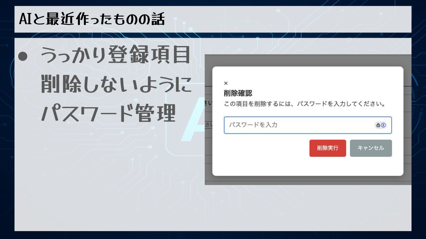 AIと最近作ったものの話 • うっかり登録項目 削除しないように パスワード管理