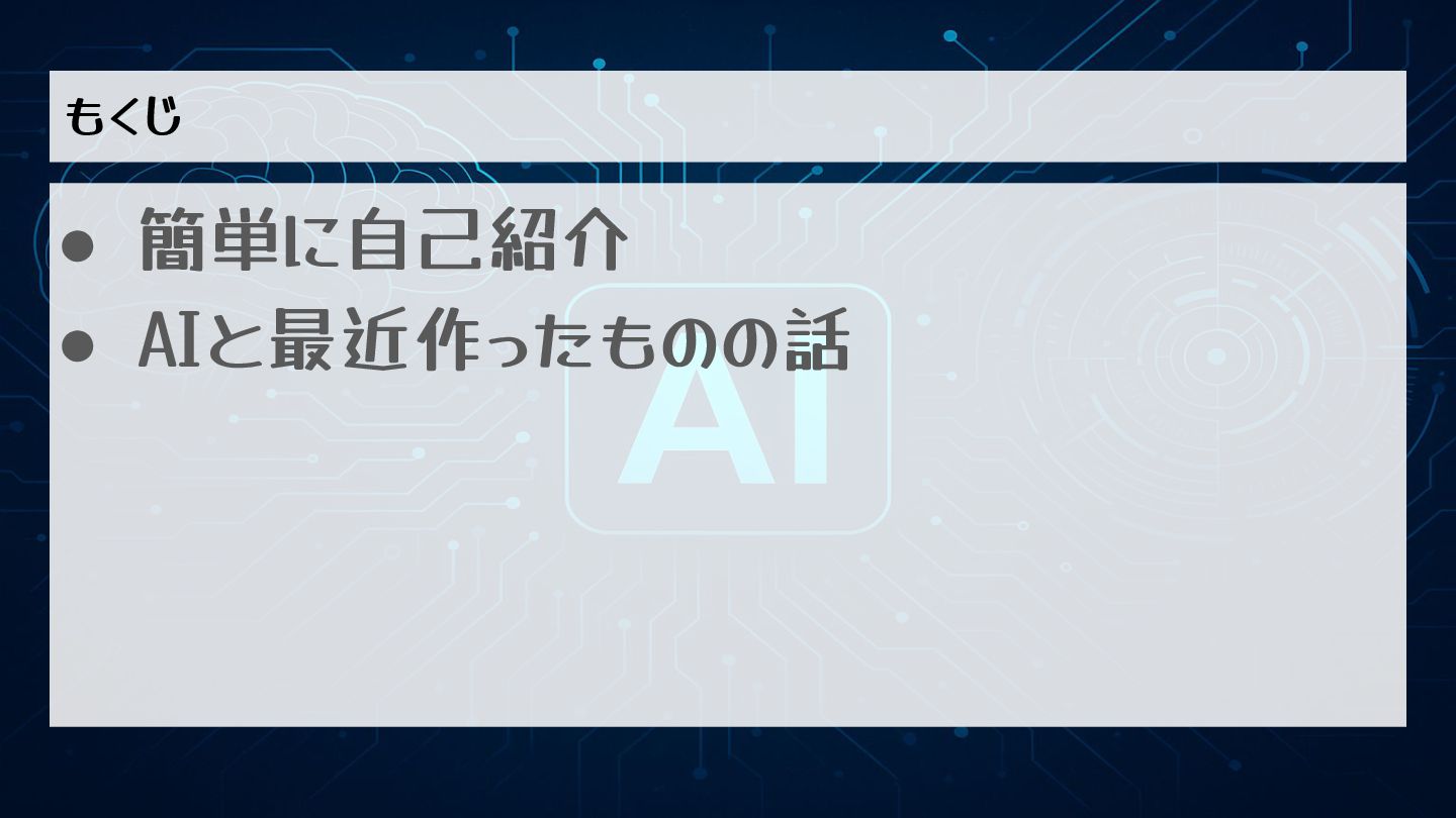 もくじ • 簡単に自己紹介 • AIと最近作ったものの話