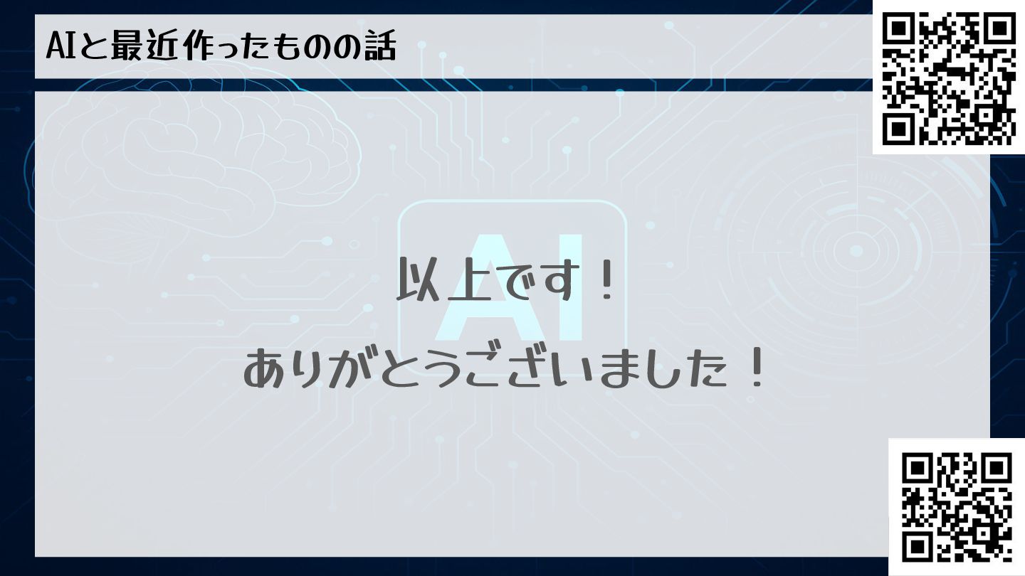 AIと最近作ったものの話 以上です! ありがとうございました!