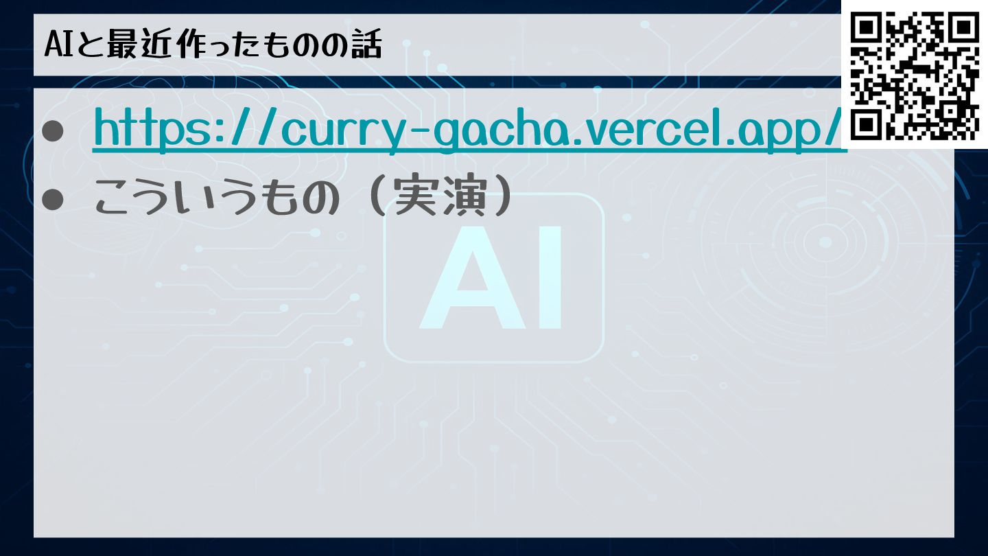 AIと最近作ったものの話 • https://curry-gacha.vercel.app/ • こういうもの(実演)