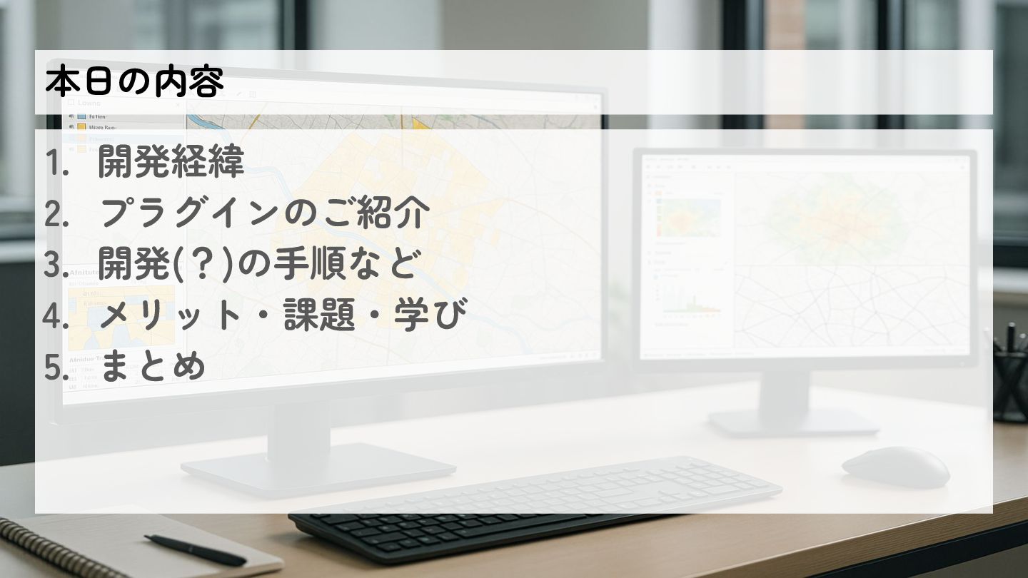 本日の内容 1. 開発経緯 2. プラグインのご紹介 3. 開発(?)の手順など 4. メリット・課題・学び 5.
