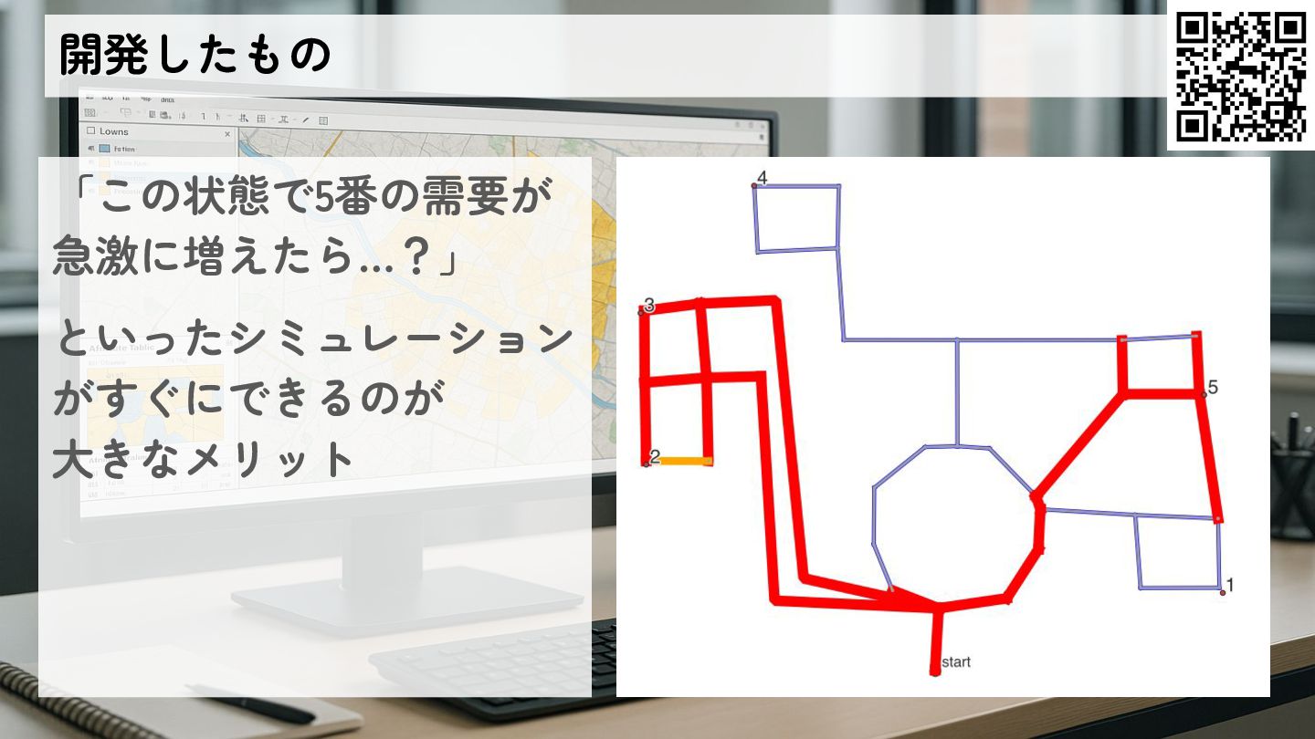 開発したもの 「この状態で5番の需要が 急激に増えたら…?」 といったシミュレーション がすぐにできるのが 大きなメリット