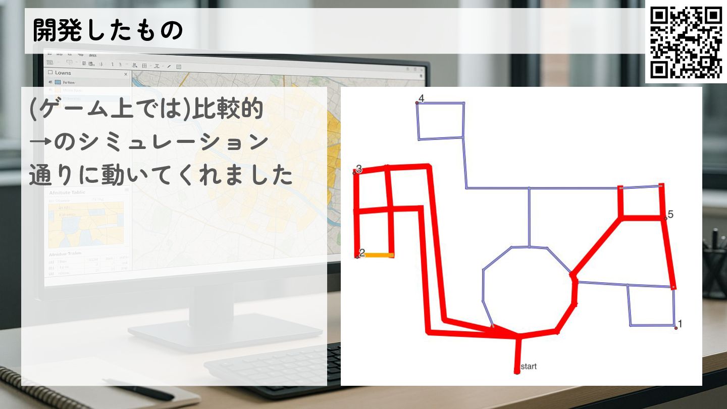 開発したもの (ゲーム上では)比較的 →のシミュレーション 通りに動いてくれました