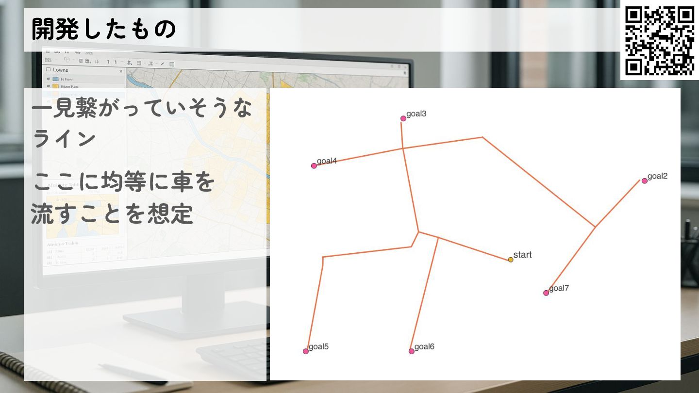 開発したもの 一見繋がっていそうな ライン ここに均等に車を 流すことを想定