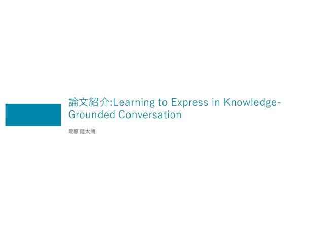Dongyan Zhao, and Rui Yan. 2022. Learning to Express in Knowledge-Grounded Conversation. In Proceedings of the 2022 Conference of the North American Chapter of the Association for Computational Linguistics: Human Language Technologies, pages 2258–2273, Seattle, United States. Association for Computational Linguistics. n 選んだ理由 l応答表現を多様化する?みたいな論文が読みたかった lタイムステップごとに生成方法を変えるのが面白そうだった 2