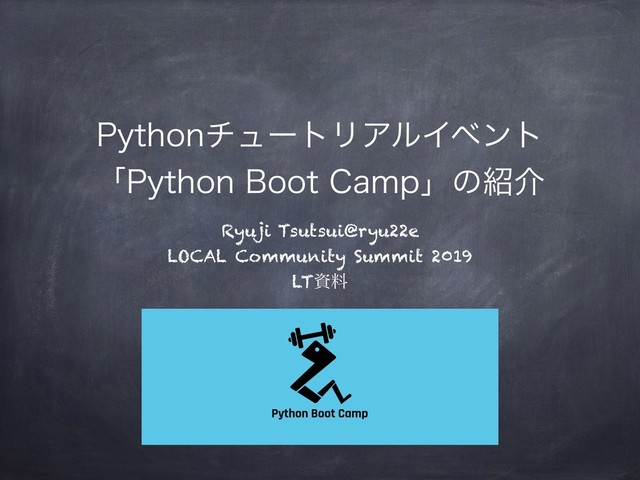 1ZUIPOνϡʔτϦΞϧΠϕϯτ ʮ1ZUIPO#PPU$BNQʯͷհ Ryuji Tsutsui@ryu22e LOCAL Community Summit 2019 LTࢿྉ