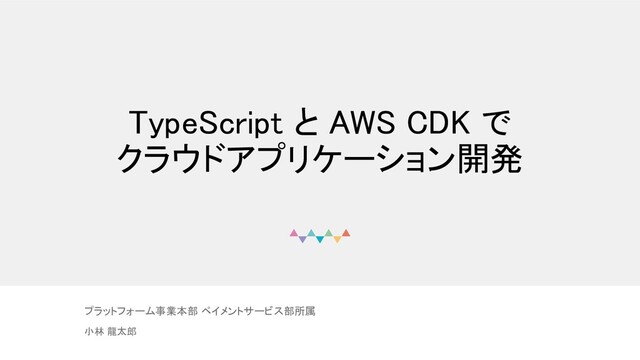 TypeScript と AWS CDK で クラウドアプリケーション開発 プラットフォーム事業本部 ペイメントサービス部所属 小林